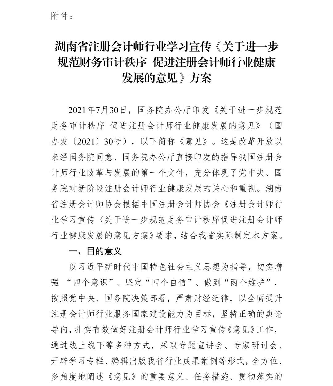 关于印发《湖南省注册会计师行业学习宣传<关于进一步规范财务审计秩序 促进注册会计师行业健康发展的意见>方案》的通知